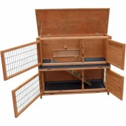 WILTEC 2-Etagen Freilauf Nagerhaus Zweistöckig Hasenstall Kaninchenstall Kleintierhaus Aus Holz