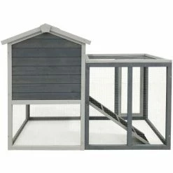 WILTEC Hasenstall Mit Freilaufgehege, Grau, Erhöhter Unterschlupf Aus Fichtenholz Kaninchenkäfig