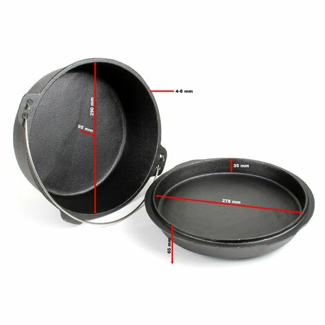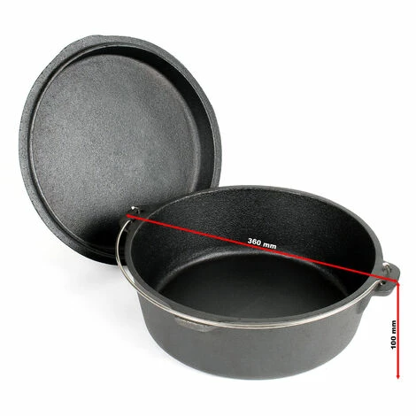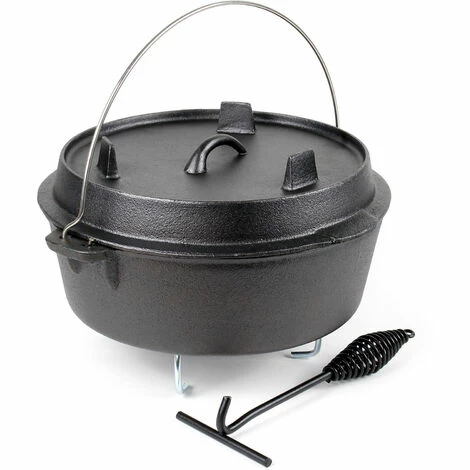 Dieser Dutch Oven aus Gusseisen mit passendem Deckel ist das perfekte Kochutensil für die Outdoor-Küche. Egal ob auf einer festen Feuerstelle, dem Lagerfeuer oder auf einem Grillplatz, mit dem 8 Liter fassenden Kochtopf können Sie die Essenszubereitung im Freien über das normale Grillen hinaus erweitern. Für einen sicheren Stand verfügt der Dutch Oven über einen Untersetzer, sodass er auch auf unebeneren Untergründen stabil steht.