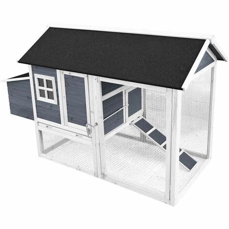 Hühnerstall mit Freilauf & erhöhtem Unterschlupf, grau 1710x800x1100mm