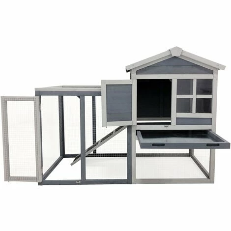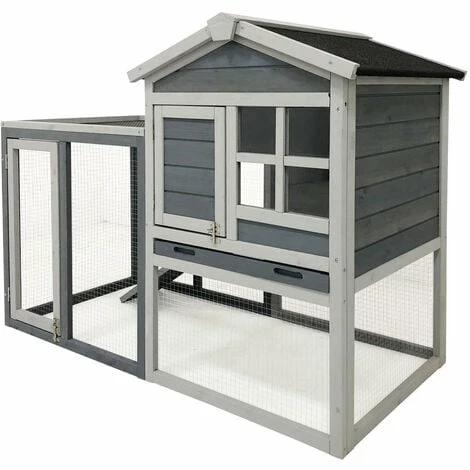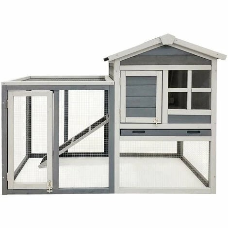 Hasenstall grau Kaninchenkäfig Freilaufgehege erhöhter Unterschlupf