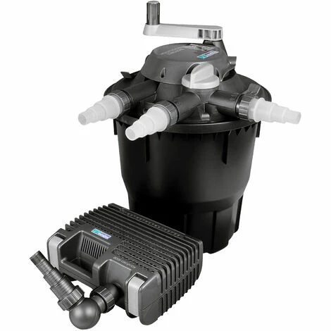 Das Hozelock Cyprio Bioforce-Filterset kombiniert einen Bioforce-Teichdruckfilter und eine leistungsstarke Aquaforce-Pumpe, die effizient grobe Schmutzstoffe fördert und speziell für Filteranlagen, Wasserfälle und Bachläufe entwickelt wurde.