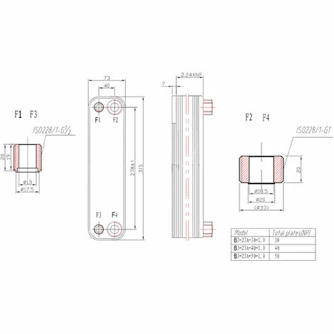 Edelstahl Wärmetauscher 50 Platten Plattenwärmetauscher max. 210 kW
