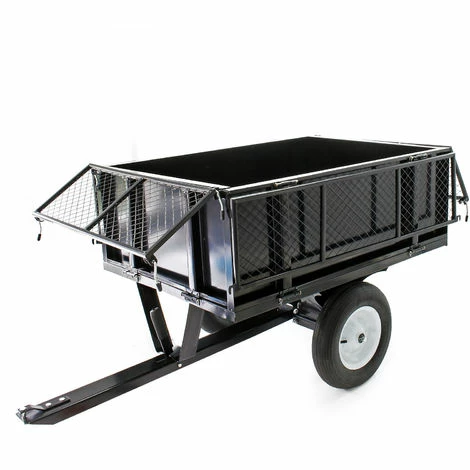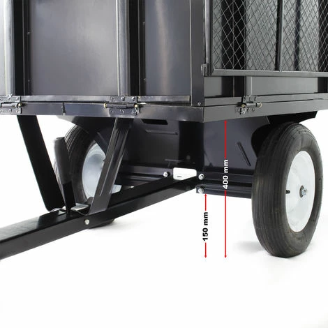 Er ist geeignet zum Transport von Rasenschnitt, Laub, Dünger, Kompost, Sand, Mulch, Holz oder anderen Materialien. Der Hänger ist mit abnehmbaren Seitenwänden ausgestattet und außerdem mit einem zusätzlichen abnehmbaren Gitteraufsatz versehen. Die Luftbereifung ermöglicht ein leichtes Ziehen des Anhängers.