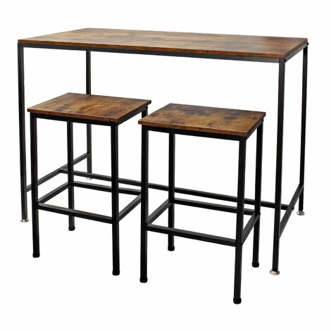 Vintage Bartisch 120x60x90cm mit 2 Barhockern stabiles Metallgestell