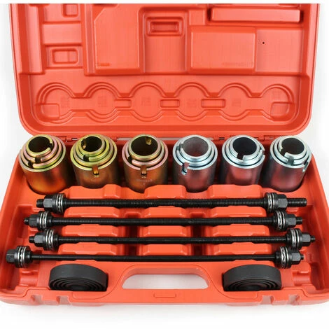 Dieses hochwertige Set Radlager-Gummibuchsen-Abzieher von XPOtool ermöglicht es Ihnen, Radlager und Fahrwerksbuchsen mit nur wenigen Handgriffen zu montieren oder zu demontieren. Mit dem Spezialwerkzeug gelingt die Montage bzw. Demontage, ohne dass die Teile dabei beschädigt werden, und eignet sich somit sowohl für den Einsatz in der heimischen Garage als auch in professionellen Werkstätten.